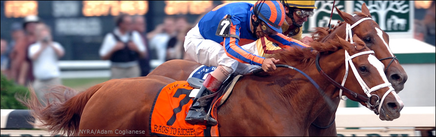 Rags to Riches becoming the third filly to win the Belmont Stakes in 2007 (NYRA/Adam Coglianese)