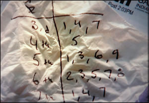 A Pick 6 is a wager where you must select winners in each of six races in a sequence. It’s customary to select multiple horses in each race to make sure you have good “coverage”, as it’s called. The Pick 6 crew singled a horse in one of the races, a technique one can use to “spread”, or have broader coverage, in other races. Here’s how they constructed their ticket with the race number and number of the horses they selected (e.g., 1,4,7 are the numbers assigned to the horses):