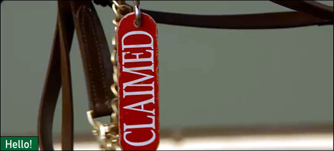 Without verifying it, my guess is that the phrase has origins in the fact that a tag is hung on a claimed horse after the race.