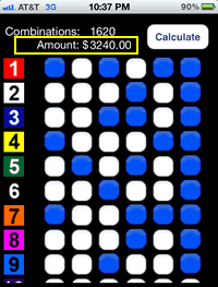 A Pick 6 is a wager where you must select winners in each of six races in a sequence. It’s customary to select multiple horses in each race to make sure you have good “coverage”, as it’s called. The Pick 6 crew singled a horse in one of the races, a technique one can use to “spread”, or have broader coverage, in other races. Here’s how they constructed their ticket with the race number and number of the horses they selected (e.g., 1,4,7 are the numbers assigned to the horses):